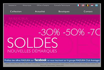 Dès la Homepage du site Madura.fr, l'entreprise annonce la couleur avec un bandeau Facebook invitant à rejoindre le groupe éponyme (éponyme, c'est pas le nom du groupe, ça veut dire que le groupe il s'appelle comme l'entreprise). Enfin presque éponyme puisque en fait le groupe s'intitule "Madura Club Avantages", ce qui a un intérêt certain lorsque des membres adhèrent ou participent puisque "Madura Club Avantages" apparaît alors sur les murs des profils...