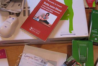 Wii-fit (donc), cahier d'exercices Lymphologics (vu que je dois tester leur manchon pour les bras... j'aurais préféré le legging anti-culotte de cheval, mais bon), crèmes en tout genre (labos Pierre Fabre toujours), appareil de massage anti-cellulite... j'ai aussi du cacheton, mais ça me tente moyen...