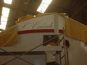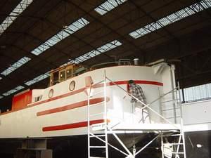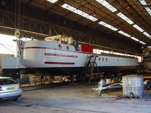 Il y à le temps de l'oubli, des quais d'abandons, le mot fin écrit en lieu et place de la devise, les mauvaises herbes et la rouille, le vernis qui s'écaille, le macaron qui est orphelin, mais là dans ce hangar j'ai refait le plein de voyage, je sait que je ne finirait pas comme trop de mes consoeur sous le chalumeau des démolisseurs. Me laissant entre les mains des Maîtres des forges, j'ai retrouvé une seconde jeunesse, je sent l'odeur de l'eau, le fil du courant pour moi ...