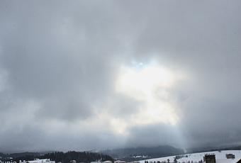 Ici aussi nous avons eu notre part de tempête entre lundi et mardi. Pour changer, dans une sorte de blizzard, il a neigé des milliards de flocons. Ce matin, sur la ville à nouveau recouverte d’un blanc immaculé, le calme est revenu. Durant quelques courtes minutes le soleil est même apparu encerclé de nuages. J’adore quand la lumière taille dans le gris. Cela donne du mystère au ciel et aux paysages.