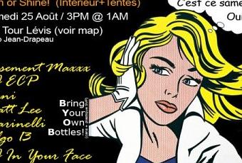 L’improvisation aura pour titre: Time of your Life, elle sera mixte, d’une durée de 15h @ 1h, Catégorie: Party till you die. Pour la modique somme de 5$, beau et/ou mauvais temps sur l’ile Ste-Hélène au site enchanteur qu’est la Tour Lévis (voir Flyer)