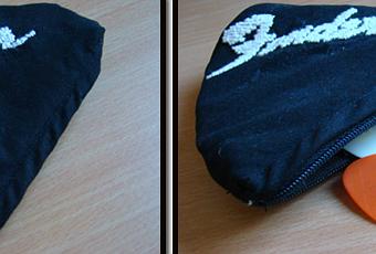 pour ranger ses médiators, j'ai poussé le vice jusqu'à la faire en forme de médiator et y broder le nom d'une grande marque dans le monde des guitaristes...