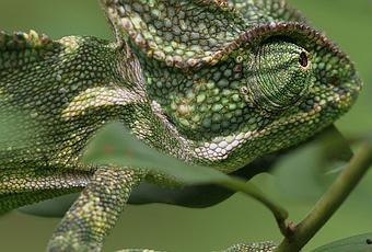 Le caméléon passe, un pied devant l'autre, chic et distingué dans son