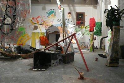 Concrètement, deux espaces ont été investis parmi les salles de l’ancienne manufacture. Deux espace similaires par leurs volumes mais habités de manière singulièrement différentes, comme deux tableaux distincts feraient pendant. Et dans le trajet de l’un à l’autre se crée un tiraillement, une gravitation sensible. Ces inconciliables sont en fait face et revers d’une même chose, ou deux moments de cette même chose. Chaque partie qui pourrait être en soi pathétique se déjoue par la présence de l’autre qui l’appuie et la nie. C’est une dynamique assurément paradoxale et équilibriste qui semble jouer en boucle de contradictions consommées. Une façon qui évoque en vrac Nietzsche et son sape, Beckett ou Kafka dans la manière d’aborder à des territoires désertés par le sens qui continuent pourtant d’essayer. MÈRE, PÈRE, NOUS DEVONS PARTIR... CE MONSTRE VA DÉVASTER TOUT NOTRE ROYAUME.Exposition J.A.M.M.S.E.S.S.I.O.N.1.2 du 14 au 16 février 2009 - Avec Michael Eric Dietrich, Nelli David, Yann Eouzan, Nicole Cuglievan, Guillaume Sarda, Esther klaes et Matteo Rovesciato. La Générale en Manufacture, Sèvres.