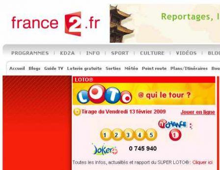Même les partenaires du Loto y vont de leur malédiction personnelle... Le site de France2 spécialement dédié au Loto, annonce même fièrement les derniers résultats que voilà...