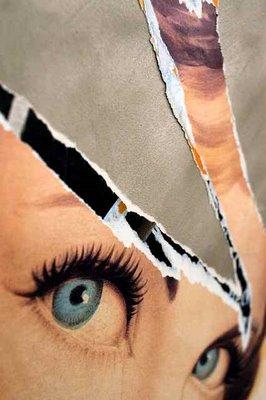 Pas de tag, cette fois, juste des déchirures. L'image est transformée au point qu'on doute qu'il s'agisse de la même affiche. Pourtant, les trois photos ont été réalisées sur le même mur d'un couloir, à dix mètres de distance tout au plus…