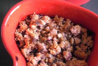 * Remplir deux ramequins avec les fruits rouges et disperser sur le dessus la préparation pâte à crumble.