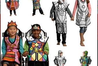 Au-delà des masques, c’est toute la panoplie de chevalier et de princesse que l’on pourra custumiser à sa guise en coloriant les costumes de coton récemment commercialisés par Villa carton - par ailleurs très connue pour ses châteaux…-