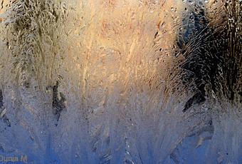 Quelle surprise ce matin vers 8h30, en allant ouvrir mes volets, de constater que du givre avait à nouveau fleuri mes vitres. Remarquez, qu’en repensant au froid qu’il a fait cette nuit (-10°C) mon étonnement a vite disparu.