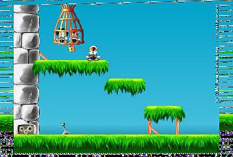 Attention les déplacements et les actions se font au clavier. Les touches : "espace" pour sauter, flèches gauche et droite pour se déplacer et sélectionner un item, flèche bas pour ouvrir et fermer l'inventaire, flèche haut pour utiliser un item.