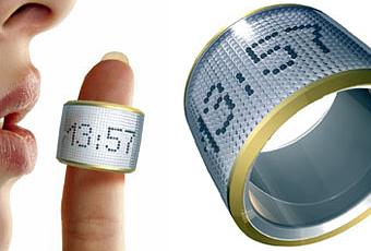 Vous n'aimez pas porter de montre à votre poignet délicat?... le concept de la montre-bague Digitus est fait pour vous! Conçue par Charles Windlin, ce bijoux "intelligent", imaginé à partir de la technologie e-ink, pourrait non seulement donner l'heure, et ça, dans n'importe quel sens, mais aussi d'autres infos, comme par exemple vous rappeler une date anniversaire. Pour le moment, cette montre-bague n'est qu'un concept... mais qui c'est... un jour...