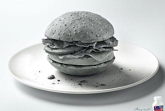 L'idée est sympa, peut-être pas hyper originale, mais amusante. On regrettera le traité noir et blanc de l'image, qui empêche de bien voir que ce ne sont pas de vrais aliments mais du béton (peut-être qu'un fond de couleur ou une mise en situation auraient pu éviter cet écueuil).
