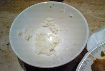 Alors que la satiete commence a faire effet sur l'estomac et que l'esprit divague tranquillement sans direction vraiment precise, j'ai le regard attire par mon bol de riz. "Tiens c'est quoi ce truc qui brille dans mon riz ?"