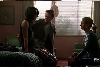 The Sarah Connor chronicles est revenue le 13 février dernier sur la Fox avec cet épisode de bonne facture. Le 13e épisode nous avait laissé sur deux cliffhanger, Riley qui a tenté de suicidé et Sarah qui a pris une balle dans la jambe en enquêtant sur un entrepôt, l'image finale nous prouvant que les trois points qui l'obsédaient devenaient peut-être réels. L'épisode commence sur Sarah qui entend une voix, celle de Kyle Reese. Elle suit cette voix intérieure pour s'échapper et prendre en otage une femme médecin, afin qu'elle lui retire la balle. On finit par voir Kyle, chouette sosie de Michael Biehn, barbe et imper à l'appui. J'ai trouvé très sympa cette mise en scène, Sarah qui a du mal à se contrôler et à rester calme se fie à ce que Kyle lui dirait. Son rapport au médecin fonctionne aussi bien, elle semble toucher par ce que lui raconte Sarah.