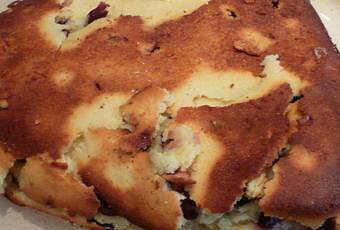 Pour un gâteau de 20 cm de diam, il faut : 250 g de ricotta, 3 oeufs, 120 g de sucre, 200 g d'amandes en poudre, 2 cuil à soupe de farine, 2 cuil à soupe d'huile, 1 zeste de citron, 100 g de cranberries séchées.