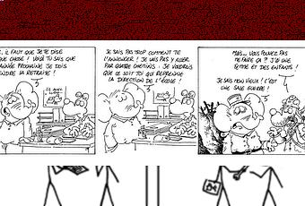 Bin oui je suis sur la fin de l'album. Encore 7 strips, des petites retouches par ci par là et j'en aurai terminé avec Ma vie de Wouf ! Du coup ces derniers strips doivent cloturer quelque chose et peut-être ouvrir vers d'autres voies au cas il y aurait un jour un tome 2. C'est la raison pour laquelle dans ce strip, qui est un des derniers, on me voit prendre la fonction de directeur d'école, fonction que j'occupe déjà mais qui pourrait donner naissance à de nombreux gags dans un autre album ! A ce propos j'ai appris que le tome 1 ne sortirait finalement qu'au mois de septembre ou octobre au lieu de mai. Je suis évidemment un peu déçu et le temps va me paraitre long mais je fais confiance à mon éditeur pour les dates des sorties.
