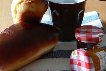 Pour former le pain lait, aplatir un morceaux de pâte, la rabattre sur lui-même et le rouler en forme de petit pain. Faire la même chose pour les autres.