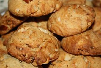 A la fourchette, mélanger la farine, la levure, le sucre, le sel, l’œuf et le beurre ramolli. Rajouter les noix et les dattes.