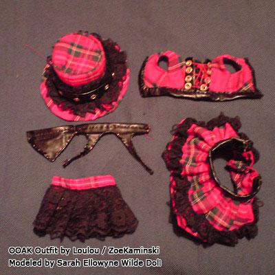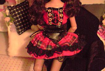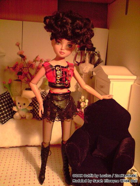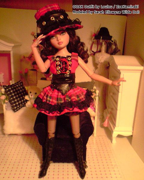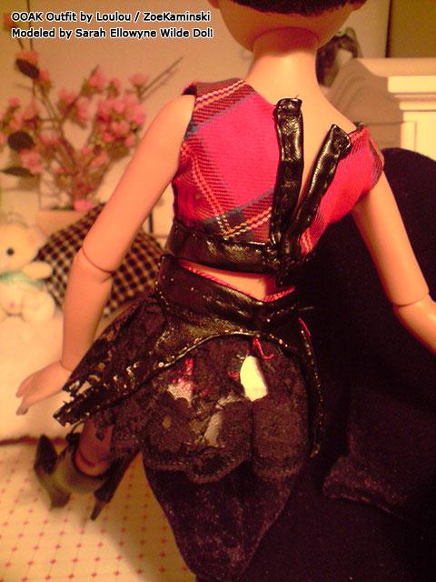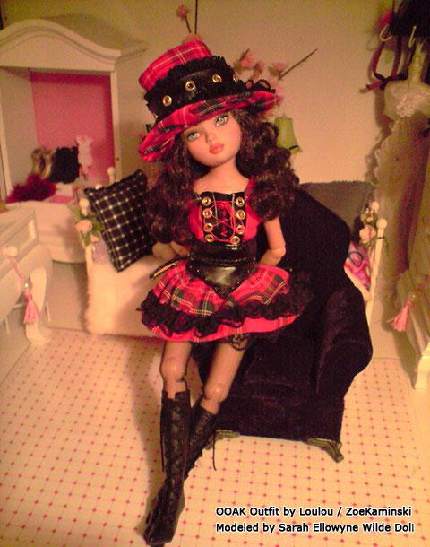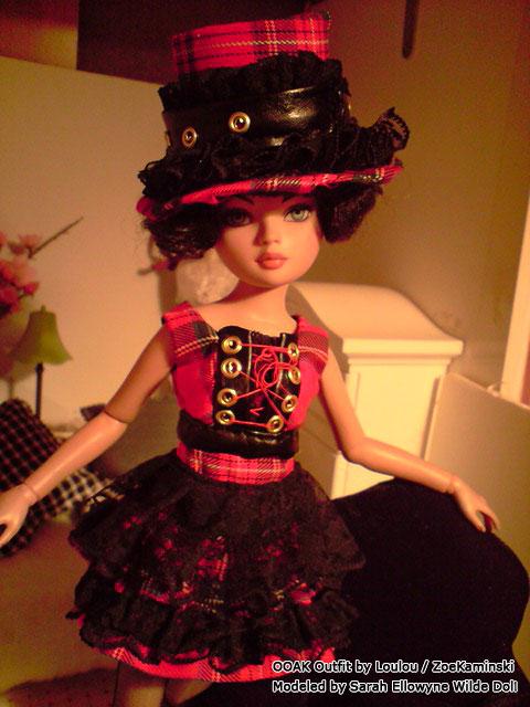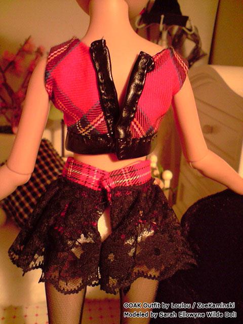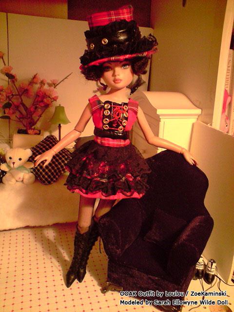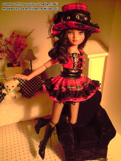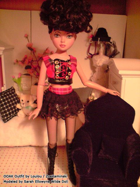 Sarah avec le top et la sous jupe de tulle (en fait dentelle cousue comme une jupe plissee, trop courte pour se voir sous la vraie jupe, alors j’ai voulu rallonger avec 1cm de plaid rouge, ca n’a rien changé, sauf que maintenant la sous jupe fait jupe a elle toute seule mais bon faut un slip noir plutot que blanc dessous, ou un short ou un bermuda…..