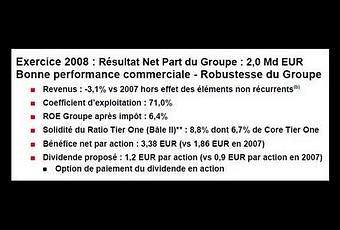 Pour approfondir : la présentation des résultats 2008 de la BNP.