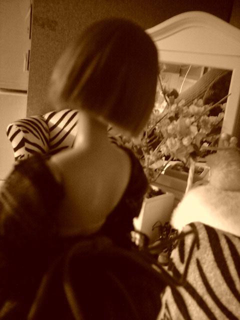 elle perdait son haut trop grand encore une fois alors j’ai resséré avec un elastike entourré de dentelle les deux cotés au dessus de la poitrine