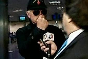 Cette nuit, en Argentine, Mgr Williamson arrive - accompagné de deux hommes - à l’aéroport international d’Ezeiza et traverse le hall rapidement afin d’éviter la presse, flanqué de lunettes noires et d’une casquette noire (photo ci-dessus), comme le montrent les images de la chaîne d’informations en continu TN. L'évêque traditionaliste et négationniste britannique arrive ainsi le mercredi 25 février 2009 au matin à l'aéroport londonien de Heathrow. Mgr Williamson arrive très exactement à 06:58 Greenwich Meridien Time, sur le vol 246 de la British Airways au terminal 5 de l’aéroport d’Heathrow à Londres. L’évêque négationniste fait surface - plus d'une heure après son arrivée - dans le hall de sortie où - pas de chance ! - l'attendaient de nombreux journalistes. Affublé d'une simple soutane, l’apparence plutôt calme et presque souriante, Mgr Williamson est escorté par des policiers vers la sortie de l’aéroport. Il n’adresse aucune déclaration à la presse qui faisait le pied de grue.