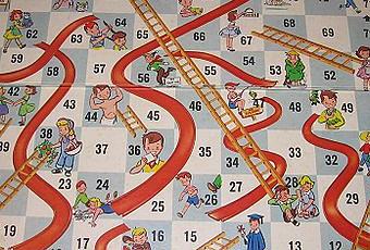 Un concours pour la gloire nous dit l'auteur, Didier Müller, qui propose un jeu mathématique basé sur le jeu de plateau serpents et échelles.