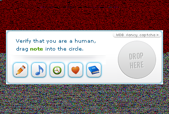 Ajax Fancy Captcha se différencie de la concurrence en demandant à l’utilisateur de glisser déposer une icone sur une “zone sensible” et non de recopier un texte apparaissant dans une zone graphique ou de réaliser une opération mathématique.