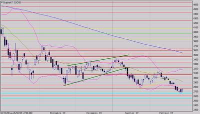 "...il faudra observer le comportement du marché dans la zone des 2670 à 2700 points."La dernière analyse de lundi indiquait que sur ce niveau important (en fait c'est une fenêtre restée ouverte en avril 2003, jamais refermée : le marché a de la mémoire; il y en a une autre sur les 2555 points !!!) un rebond pouvait s'organiser.