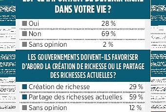 La majorité des Québécois disent qu'ils n'aiment pas l'argent. Les riches d'ici sont perçus comme étant soit exploiteurs, soit voleurs. Pire encore, les gens pensent qu'il faut d'abord partager la richesse plutôt que de la créer. Ainsi, soyons tous pareils et égaux dans la misère.