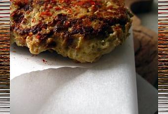 Verser un filet d'huile d'olive dans une sauteuse et déposer un peu de farce de poulet (afin d'avoir des galettes de même taille, j'ai posé des emporte-pièces de 8 cm de diamètre et déposé la farce dedans. Enlever l'emporte-pièce au bout d'une minute environ.). Faire cuire sur les deux faces à feu moyen. Les galettes sont prêtes lorsqu'elles sont légèrement colorées. Servir de suite avec un peu de piment d'Espelette supplémentaire et une salade verte bien croquante.