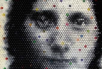 Christian Faur, an artist based in Granville, Ohio, uses hundreds of wax crayons to produce a single, pixelated image.