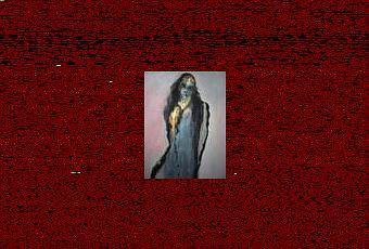 une madone souriante, qui ici ne sourit pas. Acry et papier marouflé sur toile 100x80 Gegout©2008