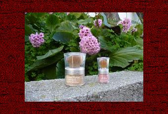 Par contre pour le teint, j'avais encore un blocage. Au niveau blush, je n'utilisais que de la terracotta, au printemps et à l'automne surtout. Pour illuminer un peu mon teint, des météorites parfois, mais plutôt pour la beauté du geste disons. L'année dernière, à peu près en même temps que le rouge rouge, j'ai commencé à collectionner les échantillons de fond de teint dans les magazines, et j'en mettais, laborieusement, quand je sortais. Ma mère m'en a même offert un cet été, mais même si je trouve sur le moment que le teint est effectivement plus "net" et unifié, je trouve qu'en fin de soirée tout cela fait un peu "masque", et accentue la fatigue de mes traits. Mais récemment j'ai enfin trouvé ce qui me correspond tout à fait : le maquillage minéral.
