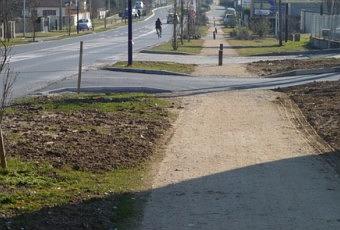 Après le trottoir cyclable spécial tassement de vertèbres de Saint-Maur (c'est Benoît qui va encore râler ^^), voici venir le trottoir spécial zig-zag sur gravier tant-pis-pour-ton fondement de Déols !