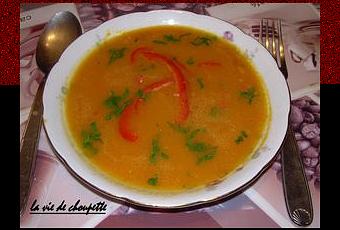 300g de potiron / 1/2 poivron rouge / 30cl de bouillon de volaille ou de légumes / 1 gousse d'ail / du persil plat / 1 c à s soupe d'huile d'olive.