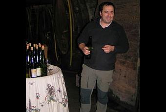 Premier soubresaut de Bruno qui enfourche son chariot élévateur pour déplacer quelques caisses palettes. C'est presque au fond de la cave que ça se passe ! Il nous rapporte un Riesling 1999 "Bildstoecklé" : le nez est légèrement terpenique, la bouche est puissante, droite sur des saveurs encaustiques. Toujours pas un gramme de sucre résiduel.
