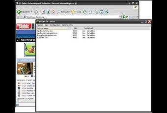 Ainsi, lorsque vous utilisez Internet Explorer, tous les changements faits à vos signets ou votre page de démarrage, ou tout spyware installé à votre insu n’est pas installé directement sur votre disque mais dans l’environnement protégé. Vous n’avez qu’à jeter le contenu de cet environnement, puisque le contenu de votre disque dur n’est pas impacté. Cette méthode est utilisée par la version Vista d’ Internet Explorer 7, mais Sandboxie peut également exécuter d’autres applications, notamment Outlook. L’interface de contrôle permet d’afficher la liste des processus activés dans l’environnement et de les gérer, ou de gérer le contenu d’une « sandbox », le logiciel vous permettant d’en créer d’autres.