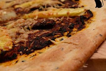 Pour moi une pizza doit avoir une pâte bien épaisse, bien moelleuse à l'intérieur et croustillante à l'extérieur. J'ai horreur de ces pizzas où la pâte est toute ramollie par la tomate (enfin horreur c'est un peu fort, disons que je préfère vraiment la pâte bien épaisse). C'est pour cela que la recette que je vous propose ce soir n'est pas vraiment une pizza, elle y ressemble de loin mais ce n'est pas le mot que je devrait employer.
