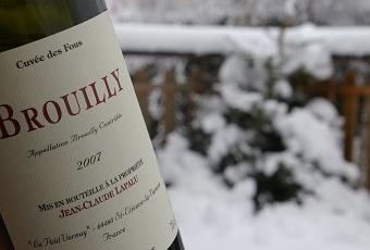 Brouilly 2007, Cuvée des Fous, Jean-Claude Lapalu Alors pour fêter le retour de la revanche du fils de l'hiver, soyons fous! Et embrouillons nous l'esprit à grands coups de Brouilly! Visiblement, le rapport de l'Inca sur les méfaits de l'alcool, Jean-Claude Lapalu l'a pas lu. Non, je ne bégaie pas. Sa Cuvée des Fous incite à la déraison, comme son nom l'indique. Un vin charnel et croquant, épicé, à savourer un entonnoir sur la tête, en effeuillant nonchalamment dans la cheminée la brochure anti-cancer éditée par l'Inca.
