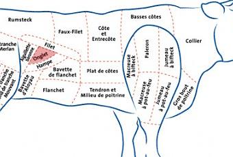 Certains esprits pervers pensent que «les morceaux du boucher» qualifient les mâles attributs dudit commerçant. Les roubignoles du moustachu, en somme. Que nenni. Les morceaux du boucher, ce sont des pièces de bœuf à poêler, que le brave homme garde pour sa pomme. Ou qu’il réserve à ses clients les plus aimables et fidèles. Il s’agit de certains petits recoins de l’anatomie bovine qui, s’ils n’offrent pas un look lisse et rassurant comme l’entrecôte ou le filet, s’avèrent tout aussi savoureux. Voire plus. Et bon marché avec ça. La prochaine fois que vous allez voir Mr Boucher, exigez donc un chouette morceau de poire, d’araignée, de bavette ou de hampe. Le banquier et la papille apprécieront.