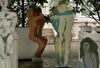 Pour célébrer la Journée de la femme, le retour du printemps et le cortège d’amoureux qui l’accompagne, on peut se poser sur les bancs publics installés place du Louvre, à Paris, pour regarder se bécoter les sculptures de Carla Milesi. Couples, promeneurs solitaires, amoureux potentiels, tous les personnages de cette artiste italienne créent une exposition gaie et facile d’abord. On y croise des tranches de vie simples et des brèves sentimentales en deux dimensions car figées dans des plaques de ciment léger et coloré qui dessinent une agréable déambulation autour et au sein de la mairie du 1er arrondissement.