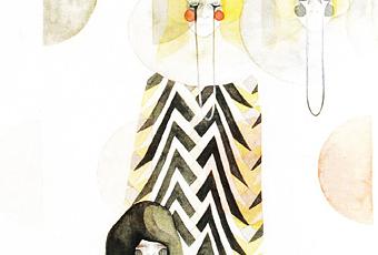 L'univers aux couleurs délavées et transparentes de l'artiste ne convient pas vraiment au scanner de mon imprimante, mais j'avais tout de même envie de vous faire découvrir ces arlequins fantomatiques...On dit de ses peintures qu'elles sont théâtrales (elle a d'abord étudié et travaillé dans le design de costumes de théâtre), et inspirées par l'art déco. Moi je dirais plutôt par l'art nouveau.