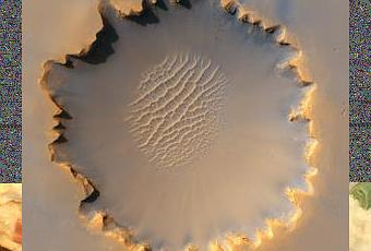 Il n'y a rien de très original de faire référence à des formes biologiques ou géologiques pour mettre en évidence leur capacité à nous plonger dans un monde abstrait, stimulant notre imagination et nos rêves. Je vous propose ici un cas très particulier. Il s'agit de photographies de la planète Mars collectées par différentes sondes de la NASA et qui ont, je trouve, une puissance picturale particulière. Elles évoquent de façon saisissante les ondulations, forces secrètes, diversions telluriques des couches sédimentaires les plus folles. Le jeu des couleurs est également fascinant (même s'il sera quelquefois artificiellement généré par des filtres numériques utilisés par la NASA). On perd en outre totalement la notion d'échelle.