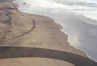 Non, ceci n’est pas un photomontage. Juste un type (en l’occurence Jim Denevan) et un rateau qui prennent le soleil et remuent des grains de sable. On avait déjà parlé d’expérimentation à base de roche sédimentaire meuble, constituée de petites particules provenant de la désagrégation d’autres roches dont la dimension est comprise entre 0,063 et 2 mm appelé aussi “sable”, dans ce billet de speed painting.