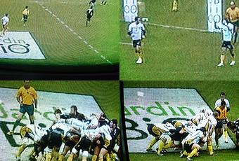 Petit clin d’œil pour bien débuter la semaine. Le rugby est bio !!! Ce n’est pas une affirmation mais une constatation. Voici les preuves, photos à l’appui. Un dimanche après-midi, tandis que je surfe sur l’ordinateur tout en regardant la télé, (eh oui ! Un homme peut faire deux choses en même temps) je m’aperçois tout à coup que le terrain est bio ! Non je ne suis pas victime d’une hallucination, la marque jardin bio habille le stade…