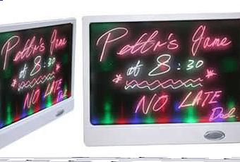 Anyway (comme disent les Québécois à la place de “enfin bon bref”…), quite à avoir un de ces horripilants tableaux à messages domestiques, autant zapper la craie ou le feutre et opter pour quelque chose d’un peu plus original et geek. Voici donc ci-dessus le tableau lumineux !