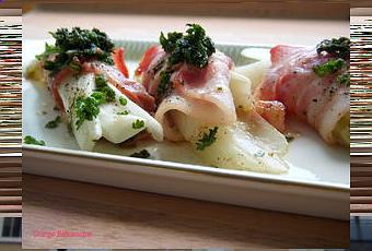 Après une longue absence sur ce blog, le temps de lui refaire une petite beauté, je retrouve enfin avec un bonheur non feint mon clavier et mes couteaux. Les promenades quotidiennes au Jardin Botanique ont ceci de bénéfique qu'elles ouvrent -un peu plus- l'appétit et aiguisent les crocs des petits comme des grands. Et puis la fréquentation des plates-bandes d'herbes arômatiques et médicinales insuffle une vraie dimension verte à ces ballades. Je ne me nourris pas que d'herbages et de légumes, fussent-ils un Eden du goût, et paradoxalement il y a peu à ce que je tombe dans la cochonaille la plus riche. En ce moment, les lardons accompagnent régulièrement nos dîners, durant les plus grands frimas ils donnent fréquemment le tempo à une purée de pois cassés. Sous forme de barde, cette fine tranche de lard gras salé ou fumé qui enveloppe le légume ou le fruit et évite son déssèchement, je l'aime autour du pruneau, mais pas uniquement.