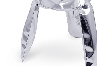 D’abord soudé à plat, le tabouret devient tabouret par injection d’eau sous pression. Les pieds prennent place et la forme improbable de l’objet nait progressivement, mécaniquement. En version acier chromé ou en blanc, gris, noir, jaune.