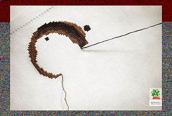 Très bonne campagne d’Ariel qui renouvèle l’ approche de son thème de prédilection : la tache.Le fond du propos est abordée directement avec une idée forte: l’incrustation de la matière dans la fibre !